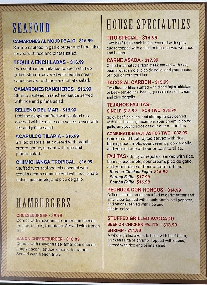 Tejanos Mexican Grill boasts an impressive menu with a variety of options for everyone. Signature dishes include the famous cheese enchiladas and combination fajitas, sure to delight. A selection of appetizers like loaded queso and stuffed jalapeños awaken the taste buds before the main course arrives.