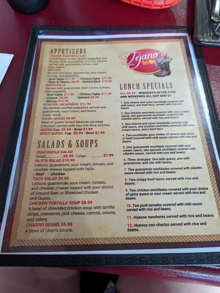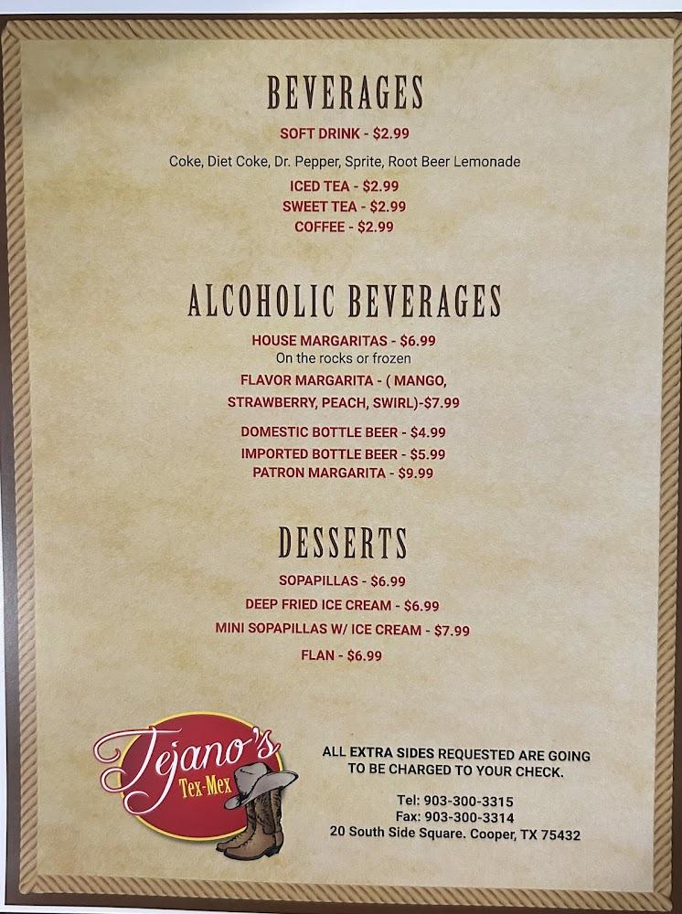 Welcome to Tejanos Mexican Grill, your new go-to spot in Cooper, TX! Nestled at 20 S Side Square, we offer an authentic Mexican and Tex-Mex dining experience with a vibrant atmosphere. From delicious, locally-inspired specialties to excellent cocktails and a wide selection of beers, we have something for everyone. Choose to dine in, grab takeout, or enjoy our quick delivery service. Our welcoming space is accessible for all, with amenities including wheelchair-friendly seating and restrooms. Perfect for lunch, dinner, or a solo bite, Tejanos is all about great food and friendly service, making every meal a memorable occasion!